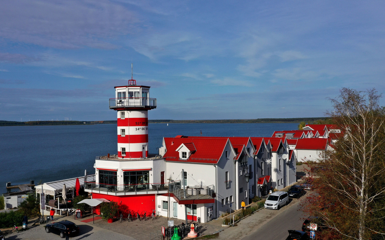 Každý, kdo navštíví Lužickou jezerní krajinu, by se měl zastavit u majáku LeuchtTurm na břehu jezera Geierswalder See. Na denní době nezáleží, otevřeno je tu denně od 7 hodin ráno. V prvních dvou patrech majáku se nachází restaurace „MehrSeen“ se skvělým výhledem na jezero a kapacitou až 60 osob. Začněte ráno vydatnou snídaní, anebo se zastavte přes den na speciality studené i teplé kuchyně, nebo si dopřejte výtečný zákusek s úchvatným a uklidňujícím výhledem na jezero. Posedět se dá na terase nebo uvnitř restaurace „MehrSeen“. Teplá kuchyně je k dispozici denně od 11:30 hodin. V přilehlé loděnici se často konají akce k různým příležitostem, jako jsou svatby, narozeniny a výročí, díky originalitě prostoru a lokality je místo často vyhledávané také pro pořádání firemních akcí, seminářů a kongresů. V „kapitánské kajutě“ pro cca 10 osob pak hosté najdou dostatek soukromí pro komornější setkání.