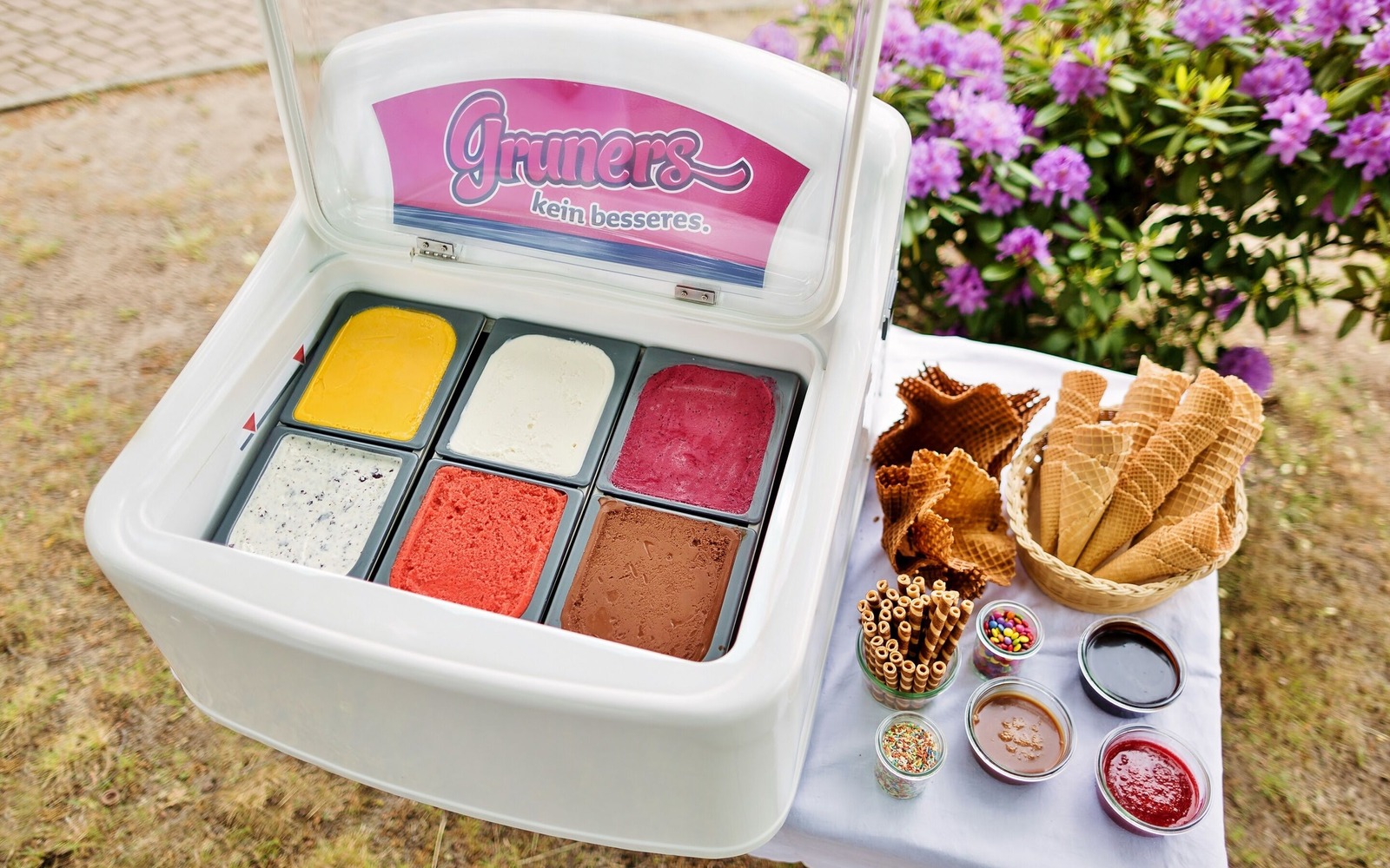 Für Feierlichkeiten können Interessierte Ihr Lieblingseis in größeren Mengen abfüllen lassen oder auch Eistorten bestellen.