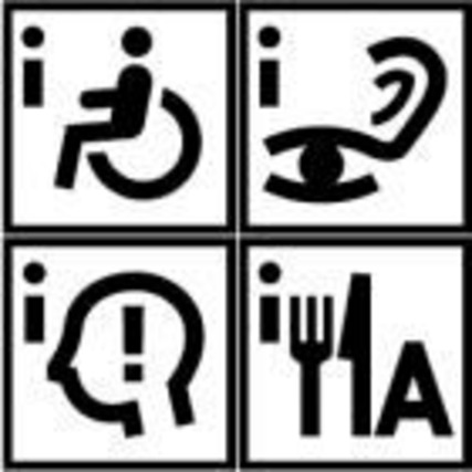 Piktogramme mit dem "i" sagen aus, dass detaillierte Informationen über die Barrierefreiheit der Anbieter vorliegen.