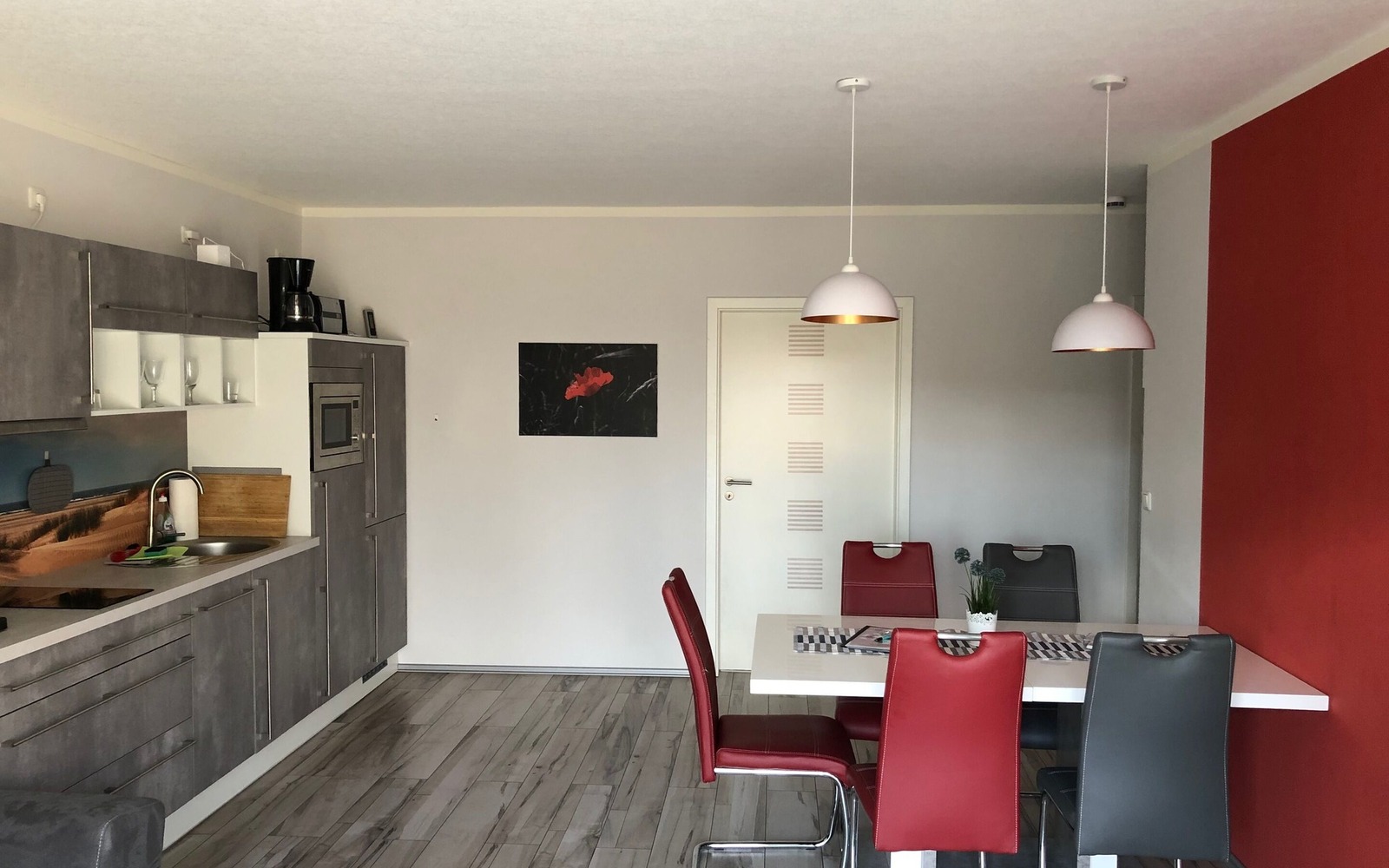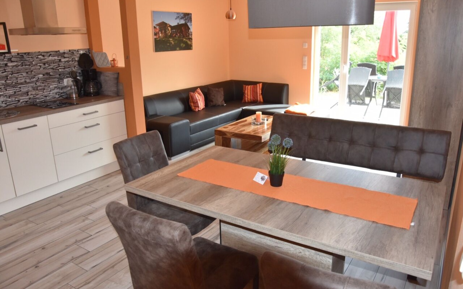 • moderner Essbereich mit gut ausgestatteter Küche und Geschirrspüler, außerdem Kaffeevollautomat