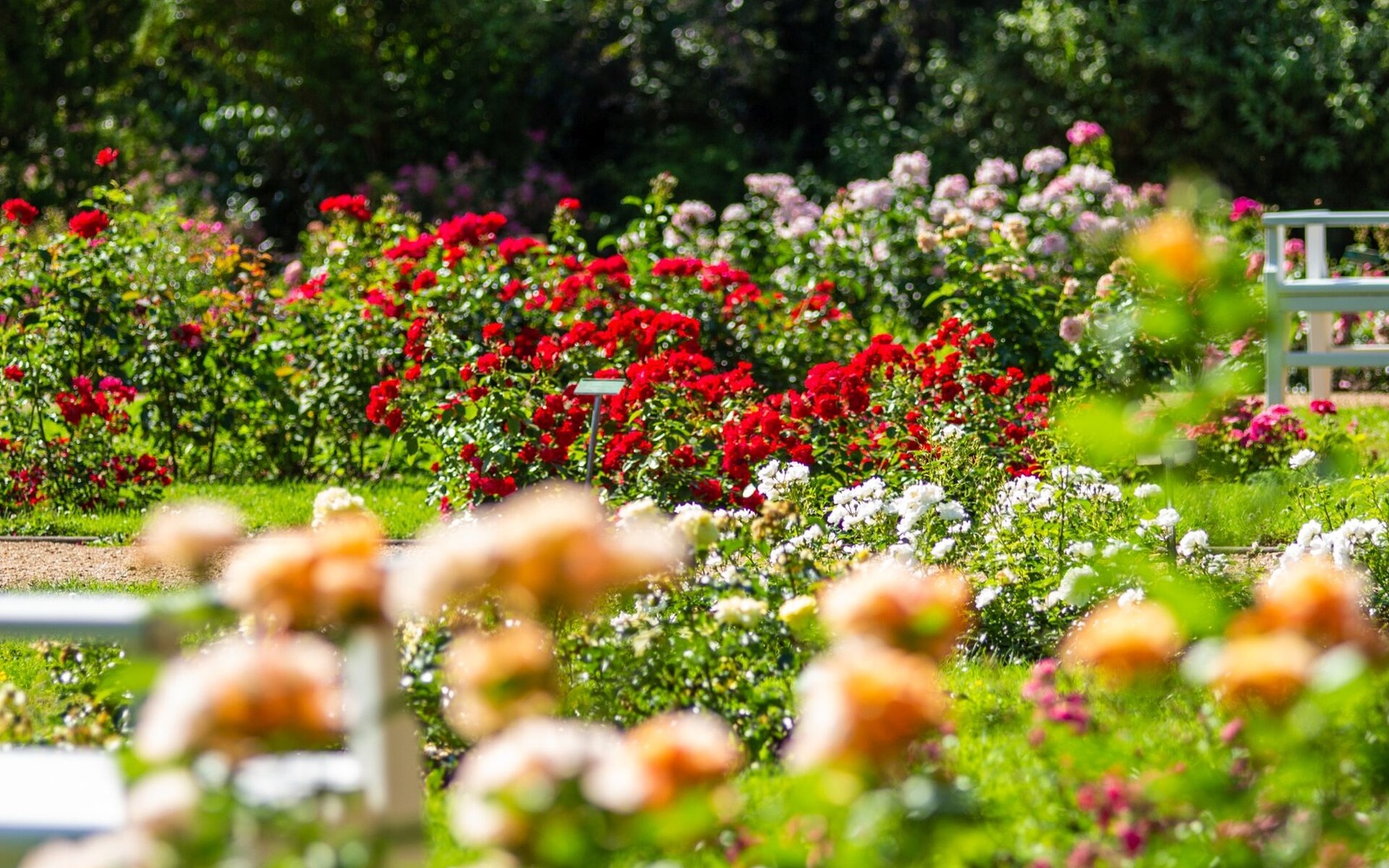 Heute finden die Besucher auf 17 ha zehntausende Rosenstöcke in fast 1.000 Sorten. Kunstvoll gefertigte Skulpturen, Pergolenhöfe, romantische Wasserspiele, Gartenbereiche im Charakter des Jugendstils und Parkelemente im englischen Landschaftsstil laden zum Verweilen ein.