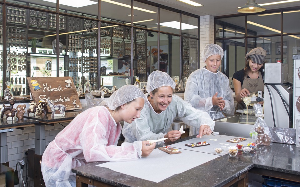 Naschkatzen und Schleckmäuler sind in den Osterferien in der Confiserie Felicitas in Hornow richtig. Aus belgischer Rohschokolade entstehen hier seit 1992 feine Pralinen, Hohlfiguren und Schokoladen. In der Mitmachschauwerkstatt können sich Familien selbst als Chocolatiers ausprobieren und ihre eigenen Schokoladen kreieren. Im Schoko-Kino erfahren sie Wissenswertes zur Geschichte der Confiserie, im Café werden feine Torten und hausgemachtes Eis serviert. Für die Jüngsten gibt es einen Spielplatz und einen Streichelzoo.