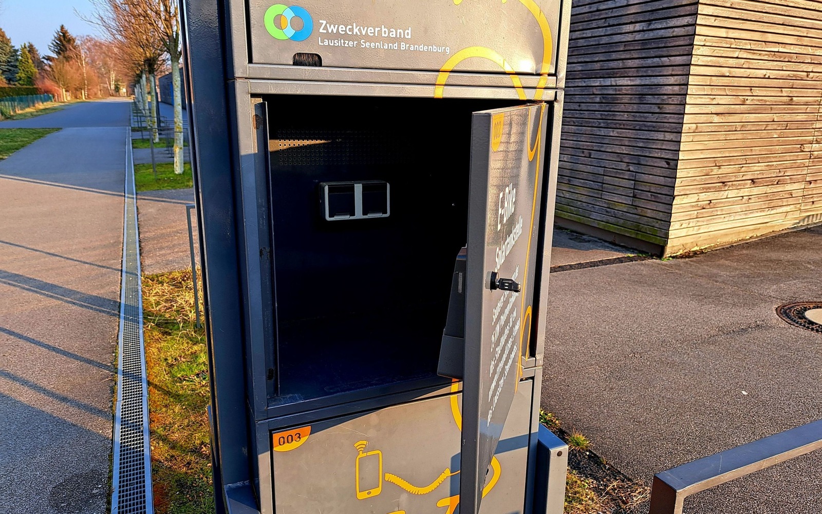 Schließfach mit Stromanschluss und Radständer, Foto: N. Dittrich, Lizenz: Tourismusverband Lausitzer Seenland e.V.