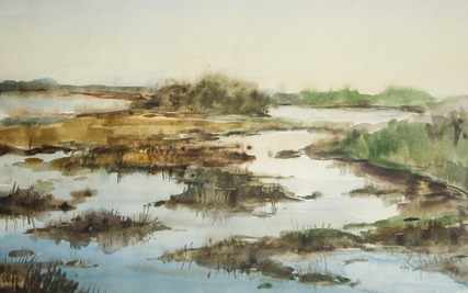 Kurt Hübner, Flachwasser am See, 1998, Aquarell , Foto: Linke, Lizenz: Museum OSL