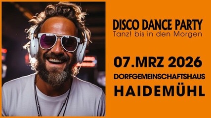 Die Disco Dance Party im Dorfgemeinschaftshaus verspricht beste Beats, gute Laune und Tanzen bis in den Morgen. Ob Klassiker oder aktuelle Hits, hier kommt jeder auf seine Kosten. Eintritt ab 18!