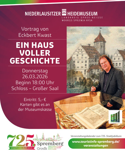 Das Niederlausitzer Heidemuseum lädt zu einem spannenden Vortrag von Eckbert Kwast ein. Im Großen Saal des Schlosses nimmt er Besucher mit auf eine Reise durch die Geschichte eines besonderen Hauses in Spremberg.