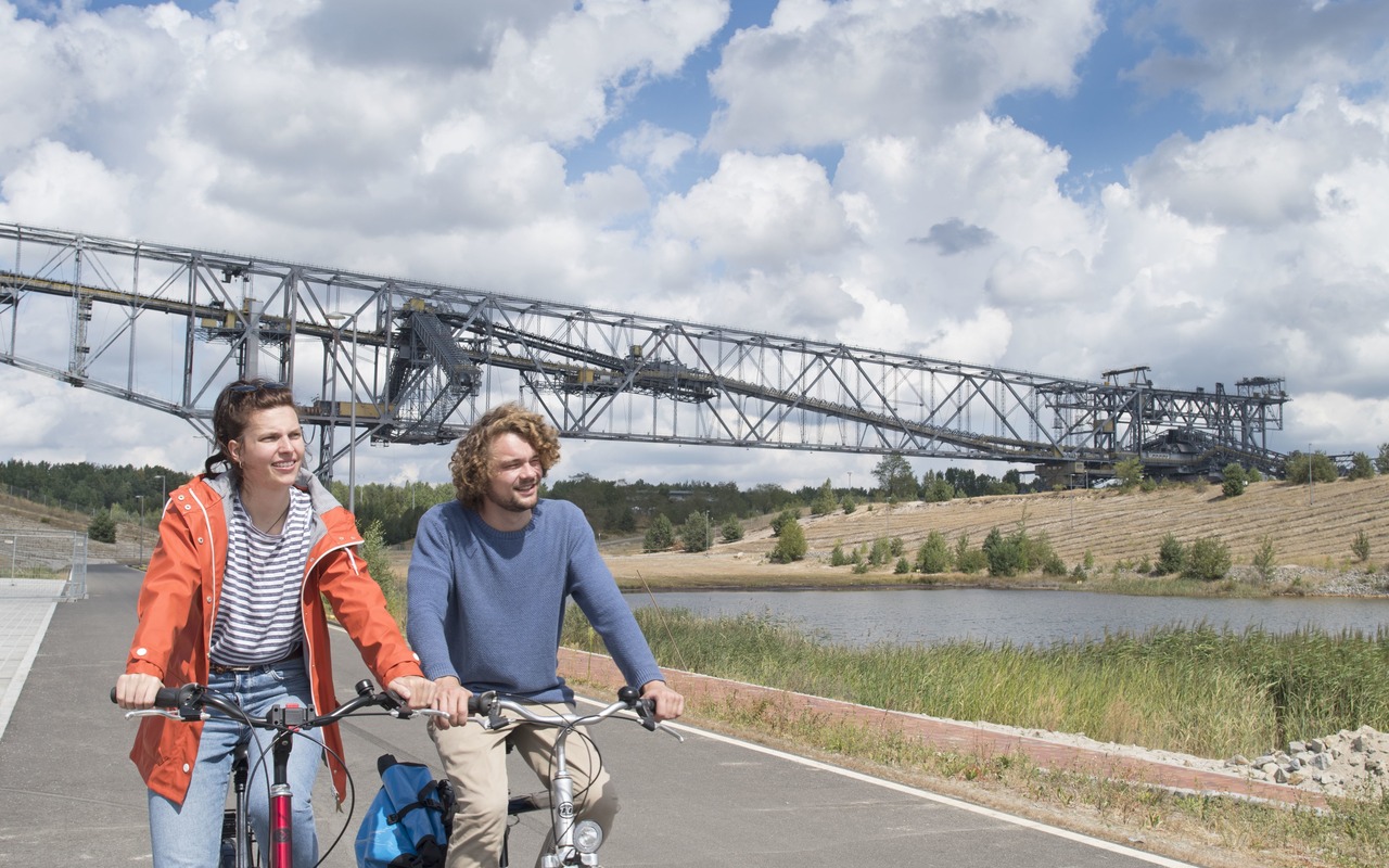 Radfahrer am Bergheider See am Besucherbergwerk F60, Foto: Nada Quenzel
