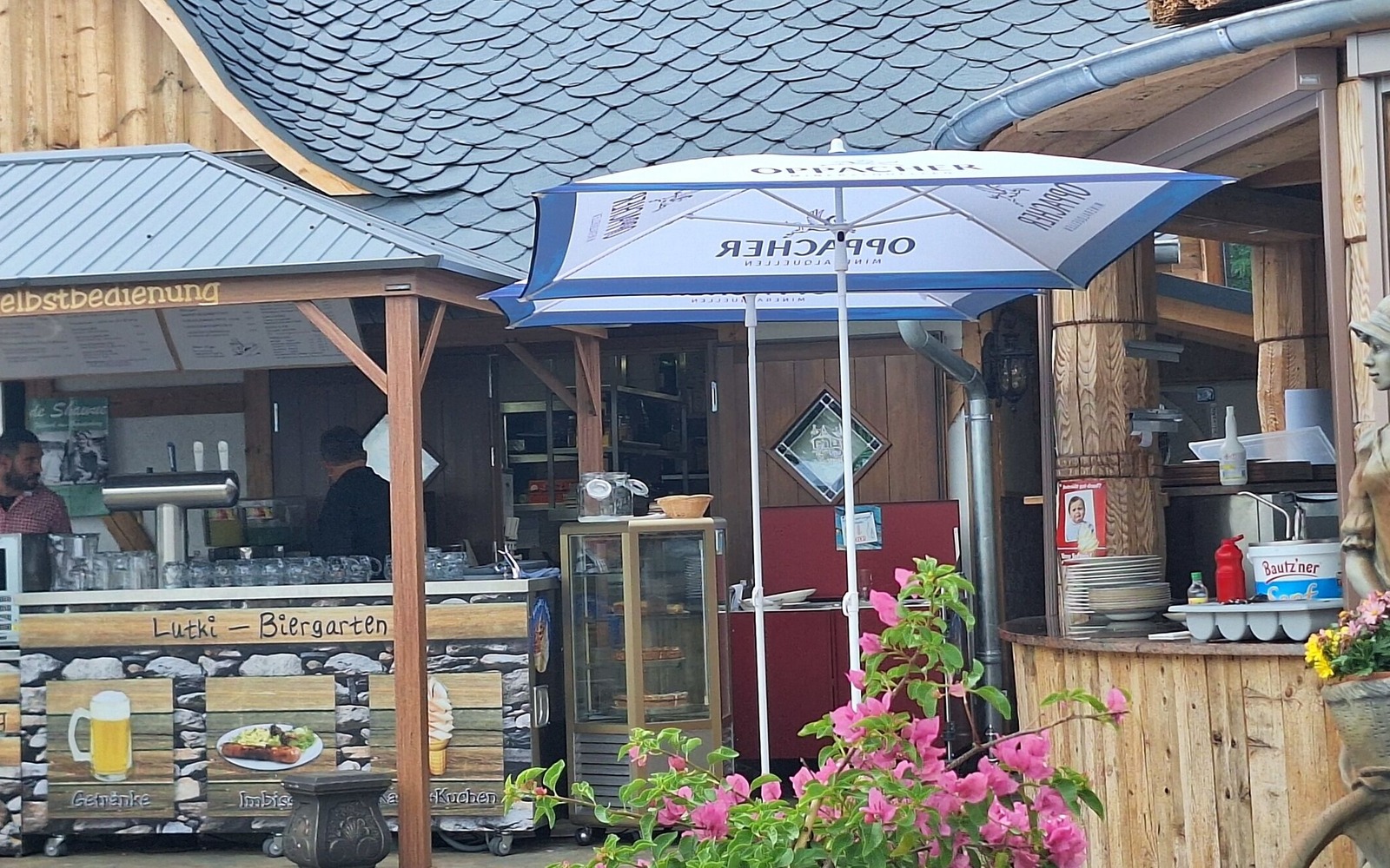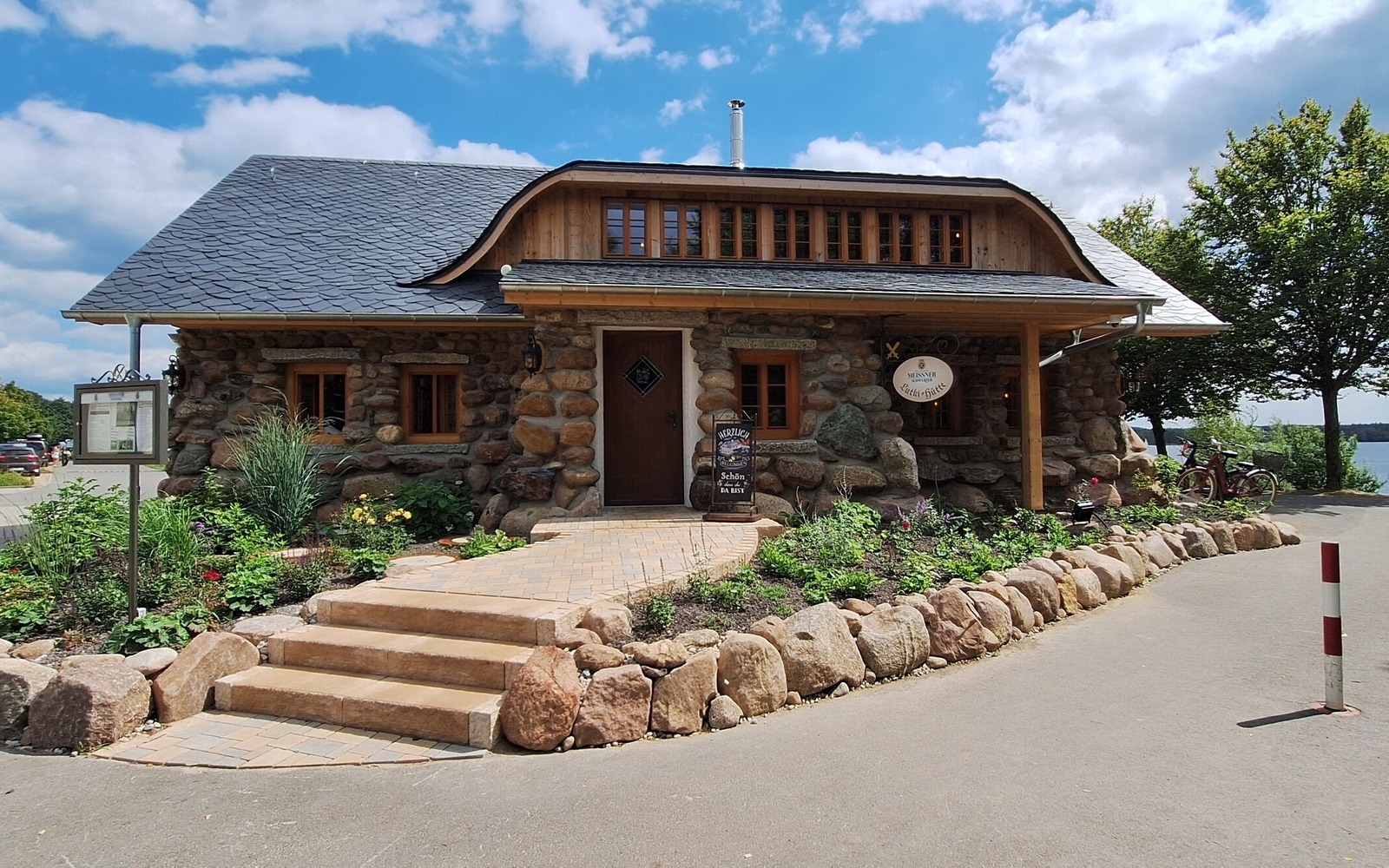 Our new wine and restaurant "Lutki-Hütte" looks as if it has been standing on the banks of Lake Senftenberg for 150 years, just a stone's throw from the Seeschlößchen. The Lutki-Hütte can comfortably accommodate up to 50 guests in a ground-floor guest area and a small gallery on the gallery. The cozy beer garden has space for around 100 guests. In addition to a self-service area, you can expect a separate service area and an impressive view of Lake Senftenberg. The rustic flair is also omnipresent in the beer garden. In addition, several fountains, extensive shade and a modern large outdoor grill station invite you to linger all day long.