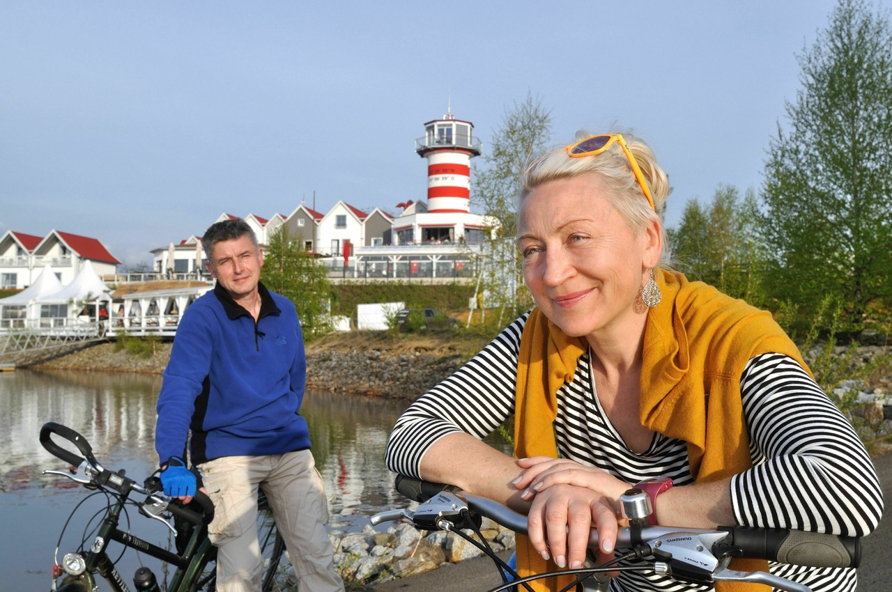 There is plenty for cyclists to discover on the 16km loop trail around Lake Geierswalde. Boats are not the only thing on the water here, you can also stay in a floating holiday home. The route crosses three canals. Koschen Canal was the first navigable waterway in the Lusatian Lakeland, linking Lake Geierswalde and Lake Senftenberg. The Rostiger Nagel (rusty nail) viewing tower on the Sorno Canal is one of the distinctive landmarks of the region. The third is the Barbara Canal, which links Lake Partwitz with Lake Geierswalde.