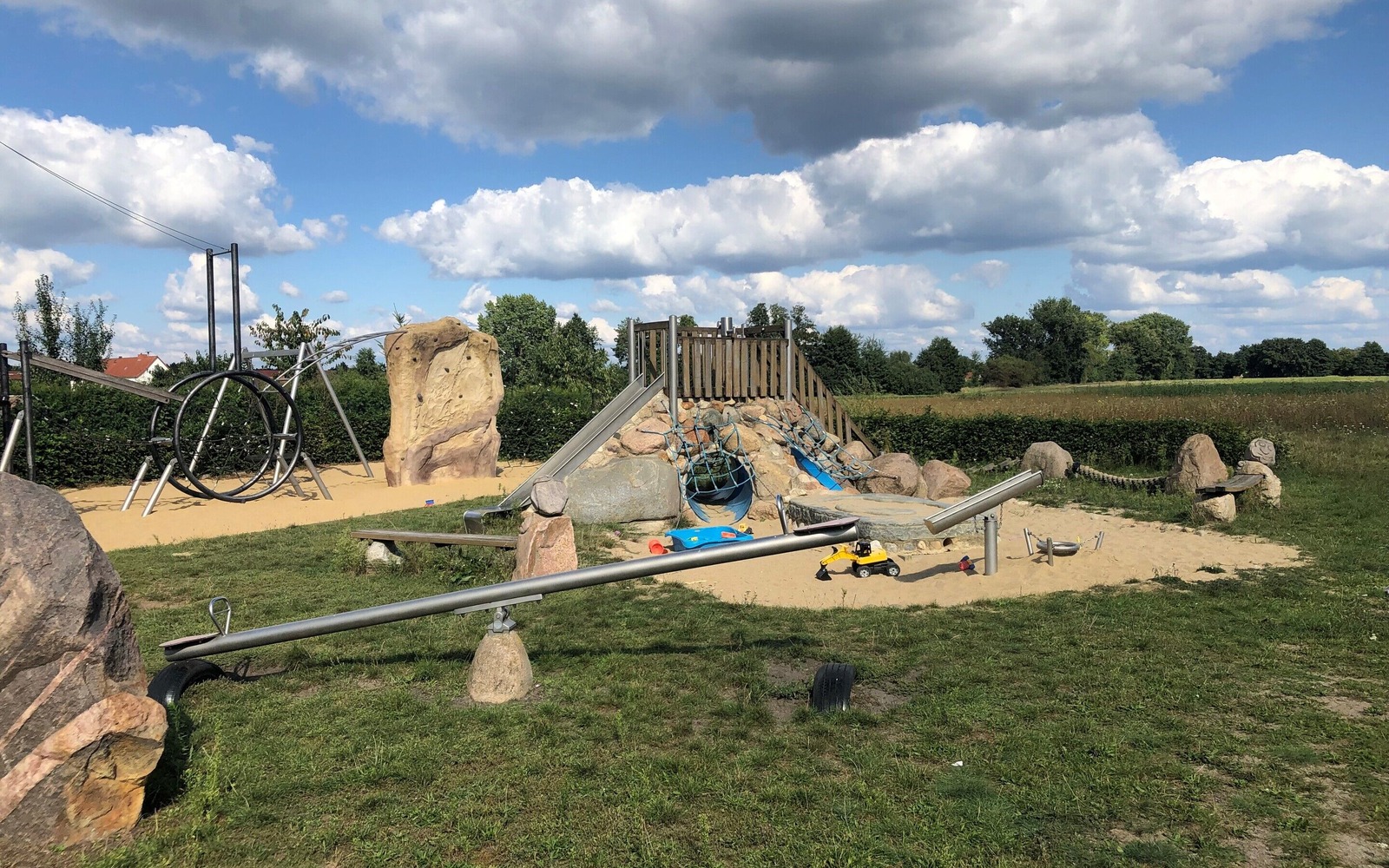 Play area for toddlers with seesaw, slide, and sand toys, Foto: Gregor Kockert, Lizenz: Tourismusverband Lausitzer Seenland e.V.