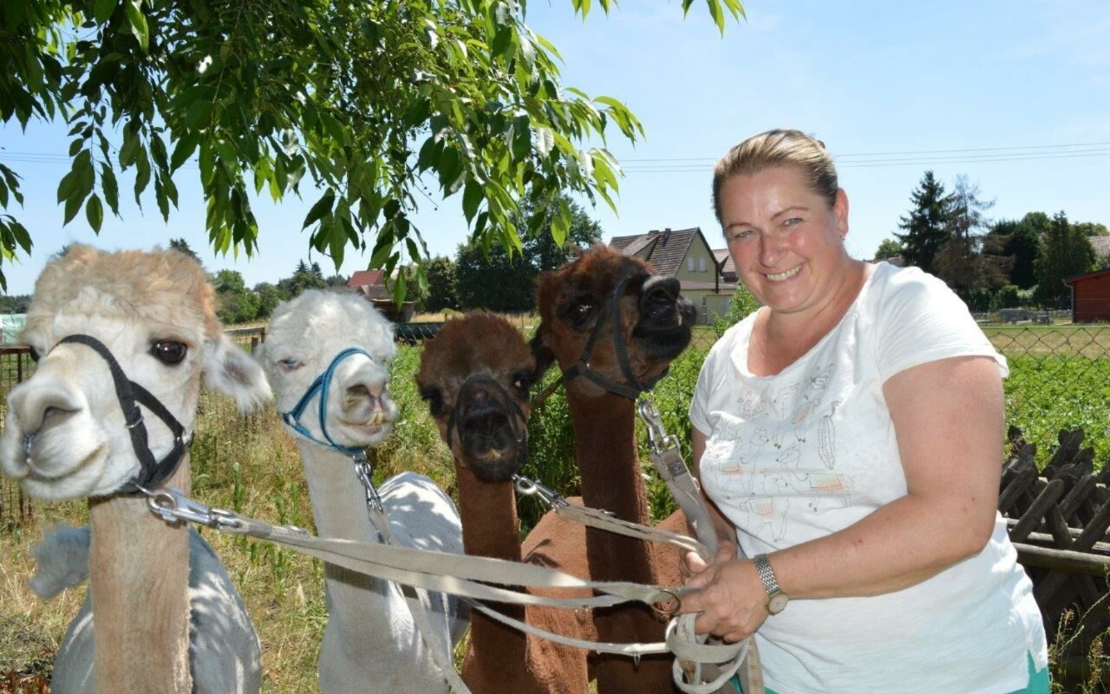 With weather-appropriate clothing/shoes, a 1- or 2-hour individual hike with two or four alpacas is possible, depending on your wishes. You are also welcome to have a picnic in between. During the hike you will learn a lot about alpacas and will also be allowed to feed the animals. Naturally you will also be informed about the Lusatian Lake District, as you will be travelling through it with the alpacas. Alpacas can be guided and stroked by all the guests, because they are animals used for animal-supported therapy. They are therefore used to dealing with people – whether large or small. Furthermore, their wool is suitable for allergy sufferers, so that people with animal hair allergies are not restricted in any way.