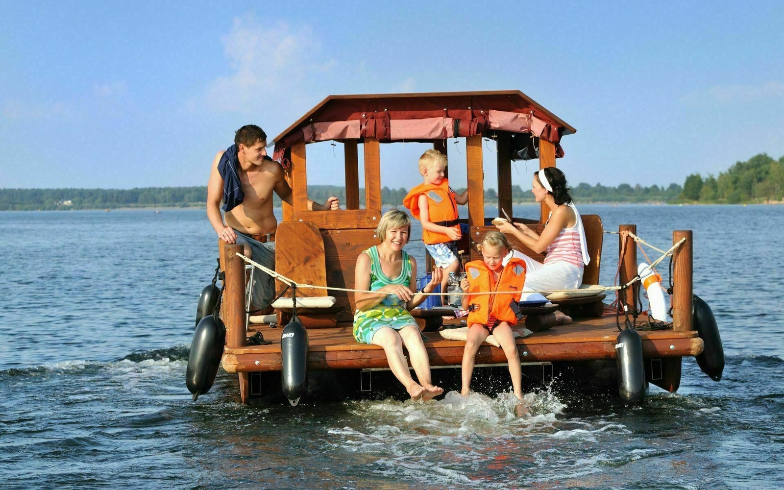 A raft trip is an adventure for the whole family. Board your raft on Lake Senftenberg – no licence required – and discover the freedom and wide open spaces of the new lakes. You can hire rafts for a day trip or overnight. If you prefer to have your barbecue on the water rather than on the beach you can also hire round barbecue boats on Lake Geierswalde. Again, no licence is required.