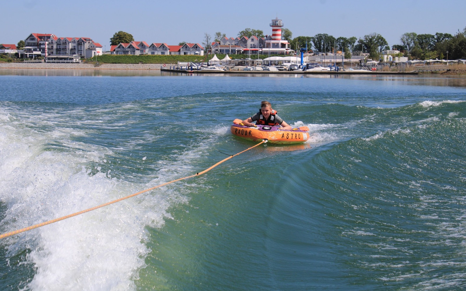 Tube riding", where an air-filled cushion is pulled behind the boat, is also part of the offer and great fun for young and old.
