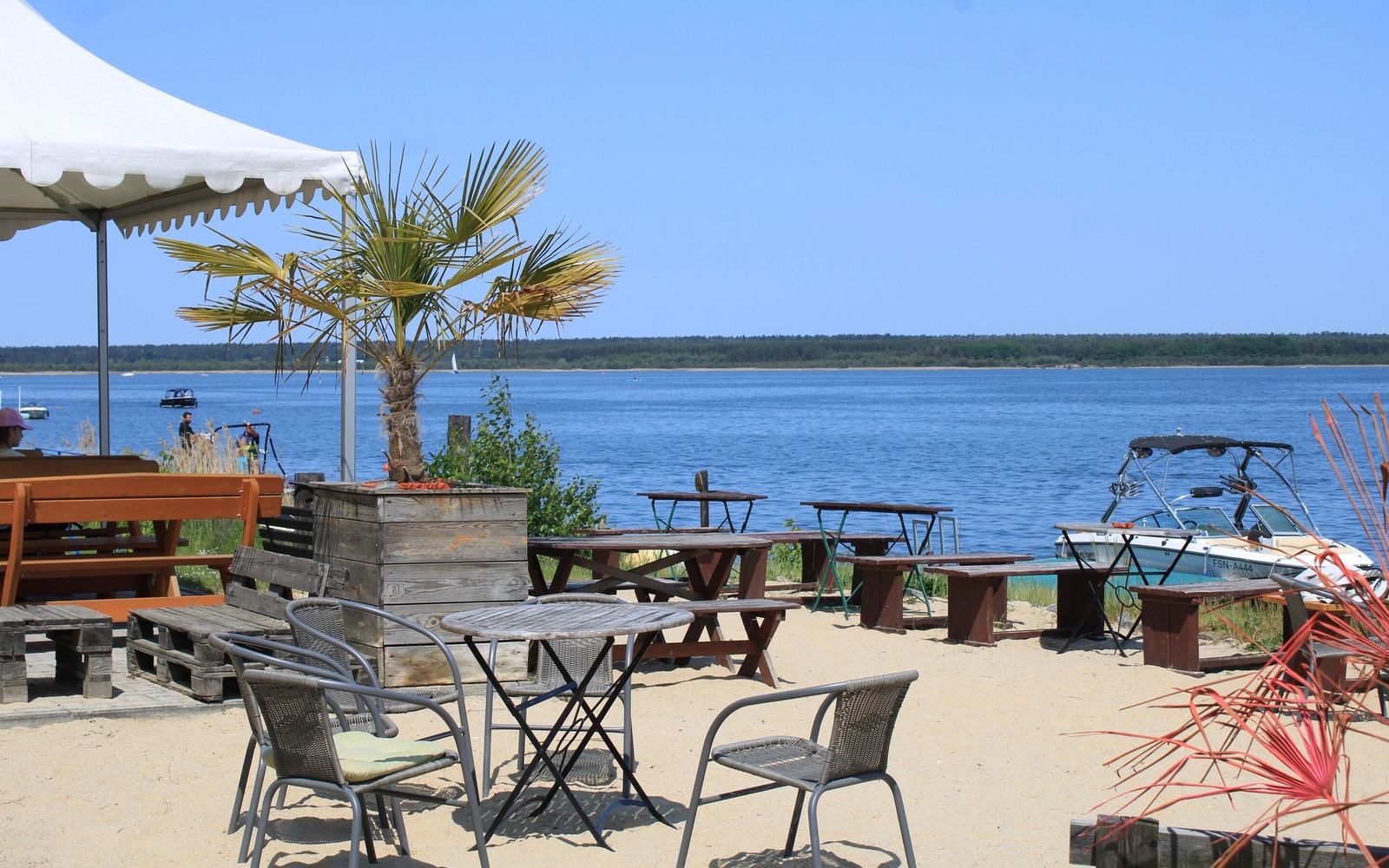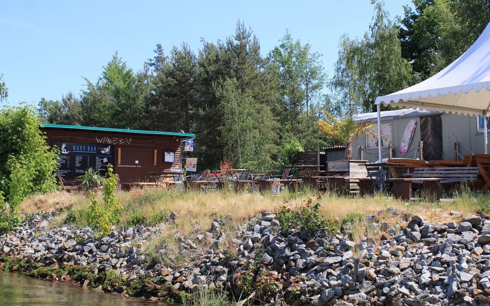 Afterwards or during the day, cool drinks and a snack can be enjoyed at the wake bar on the premises. You can relax on the beach terrace, which offers a beautiful view over Lake Geierswald and where you can marvel at the water spectacle from a safe distance.