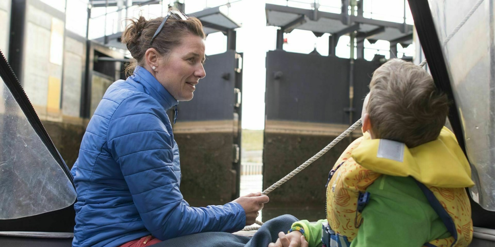On the way to Senftenberg, Tom waves to others who are out and about in their sailing boats, rafts and canoes. At the marina, mum carefully manoeuvres the boat towards the jetty, and Tom is allowed to help with docking. On land, the first stop is the harbour master’s office, and then it’s off for a delicious ice cream. While mum and dad enjoy the view of the pier and the boats in the marina, Tom is busy climbing around the large playground next door. The next stop is Lake Geierswalde. Two tunnels and a lock turn the trip through Koschen canal into a real adventure.