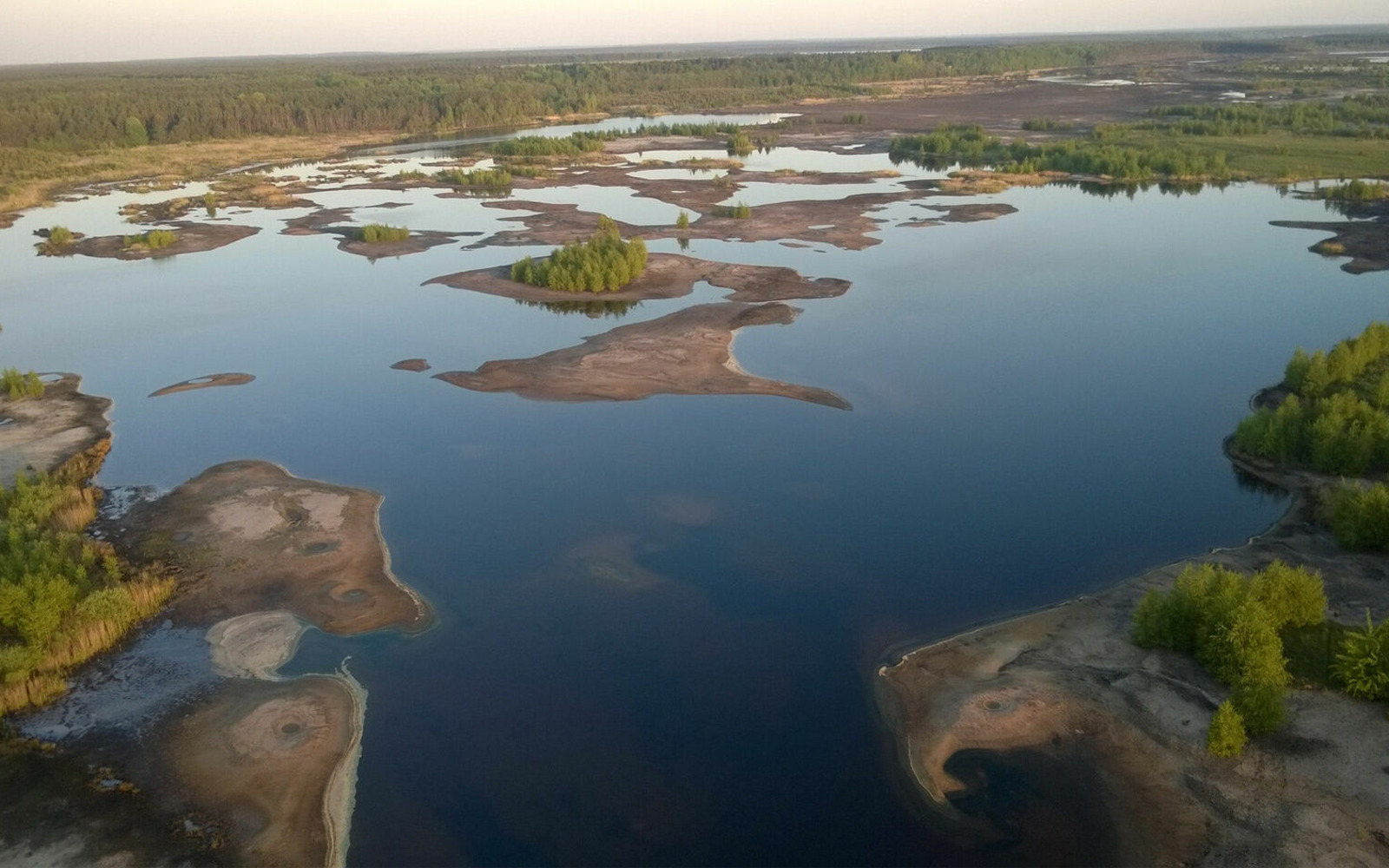 Lake Bergen is located in the Sperrgebiet (restricted area) and emerged from the former Südostschlauch opencast mine in the Spreetal opencast field. It fills up by itself due to groundwater recharge. The lake water level has been artificially lowered since 2015. Due to the numerous shallow water zones and islands, it is an important resting place for migratory birds such as cranes, northern geese and waders. Furthermore, rare bird species such as the fallow pipit, sandpiper, lapwing, little ringed plover, whinchat and bluethroat breed there. Lake Bergen is part of the Lusatian Lakeland nature conservation project. In the protected post-mining landscape, it is ensured that certain plant and animal species develop.