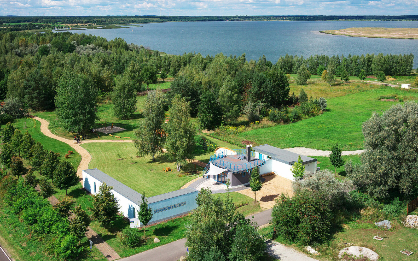 • Gräbendorfer Garten environmental encounter centre in Casel with views of the lake’s island bird sanctuary