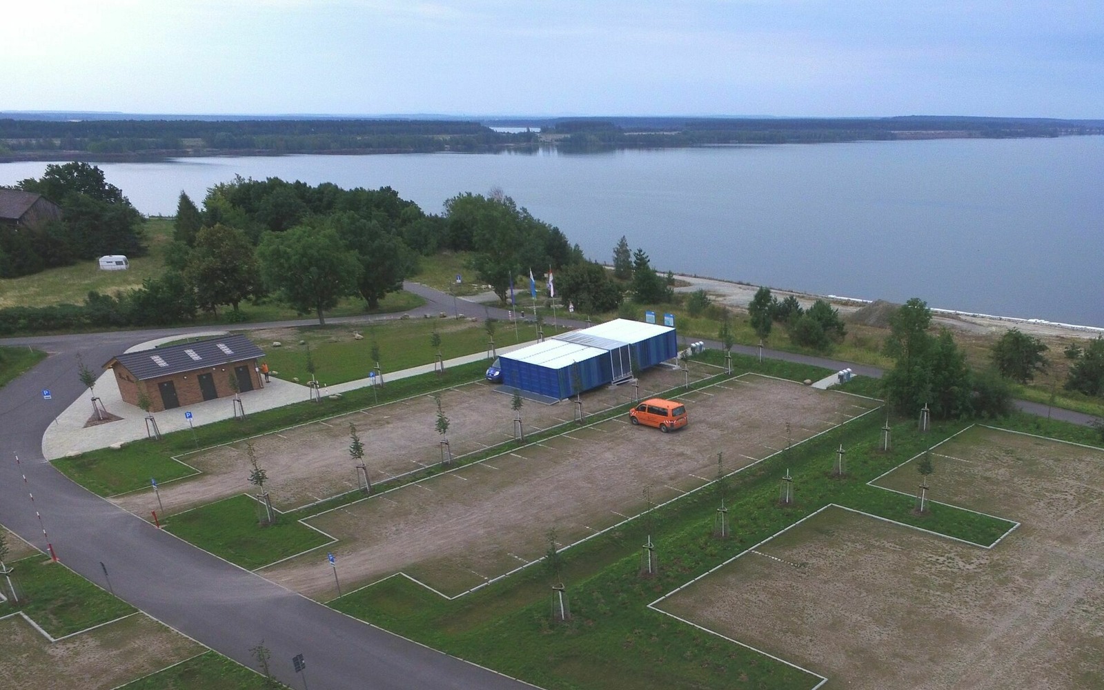 Lake Sedlitz cannot yet be used for water tourism. However, there is a special permit as a landing site for seaplanes and permission for the Modellwasserflughafen e.V. in Lieske to launch/land model seaplanes. The shore zone at Lake Sedlitz is changing. At the Lieske lakeside beach, a newly designed, spacious car park with camper van pitches and a sanitary building invite visitors to stop off at the water's edge. In the Lieske area, the shoreline design has already been completed, and a passenger boat landing stage, a bathing beach and a barrier-free ramp have also been built there. A playground, a resting place for water walkers and a building for snacks are to make the location even more attractive in the coming years. The "Glück Auf" exhibition is already open during the season at the Lieske lakeside beach and offers visitors exciting insights into the history of lignite mining and the development of the Lusatian Lakeland. The north shore is the only major development area for a maritime business park in the Lusatian Lakeland. The transport and media development has already been completed and marketing of the land will begin shortly. South of Sedlitz, development work was carried out in 2022 in Sedlitz Bay. Via the newly constructed road "Zur Sedlitzer Bucht", visitors can take a break at the public car park and enjoy the view of Sedlitz Bay. In addition to the basic water tourism infrastructure with a beach, a rest area for water walkers and a multifunctional building, a special residential location on the waterfront is also to be developed here in the following years.