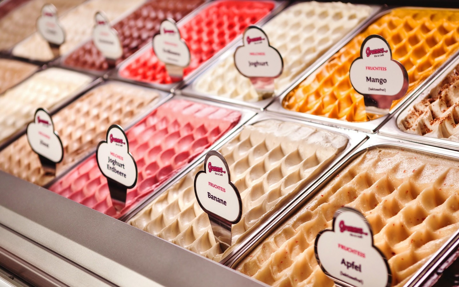 Für Feierlichkeiten können Interessierte Ihr Lieblingseis in größeren Mengen abfüllen lassen oder auch Eistorten bestellen.
