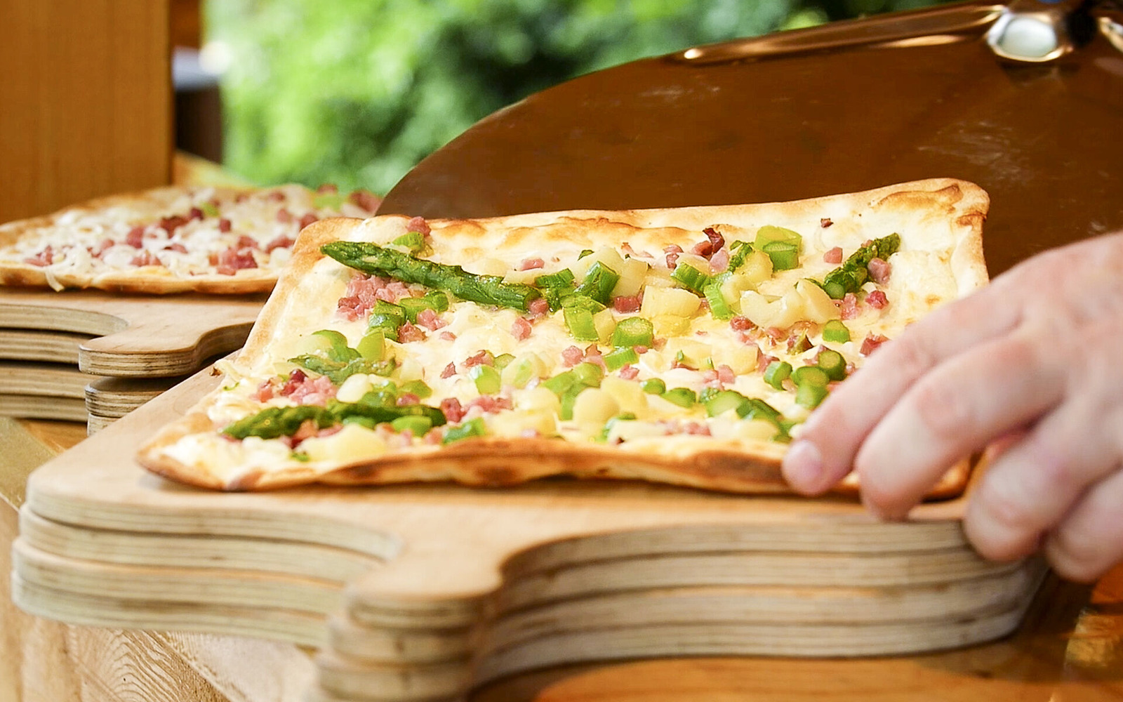 In den Wintermonaten kommen statt der Flammkuchen fast vergessene Schmor-Genüsse wie butterzarte Lammhaxen oder feine Kalbsbäckchen auf die Tische.