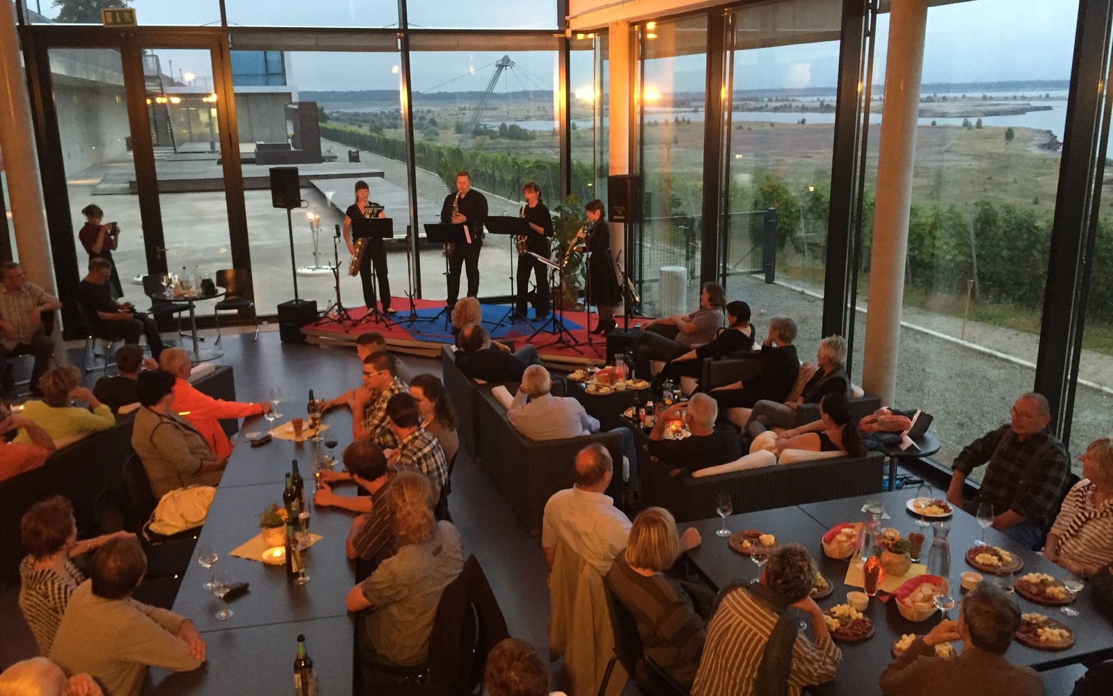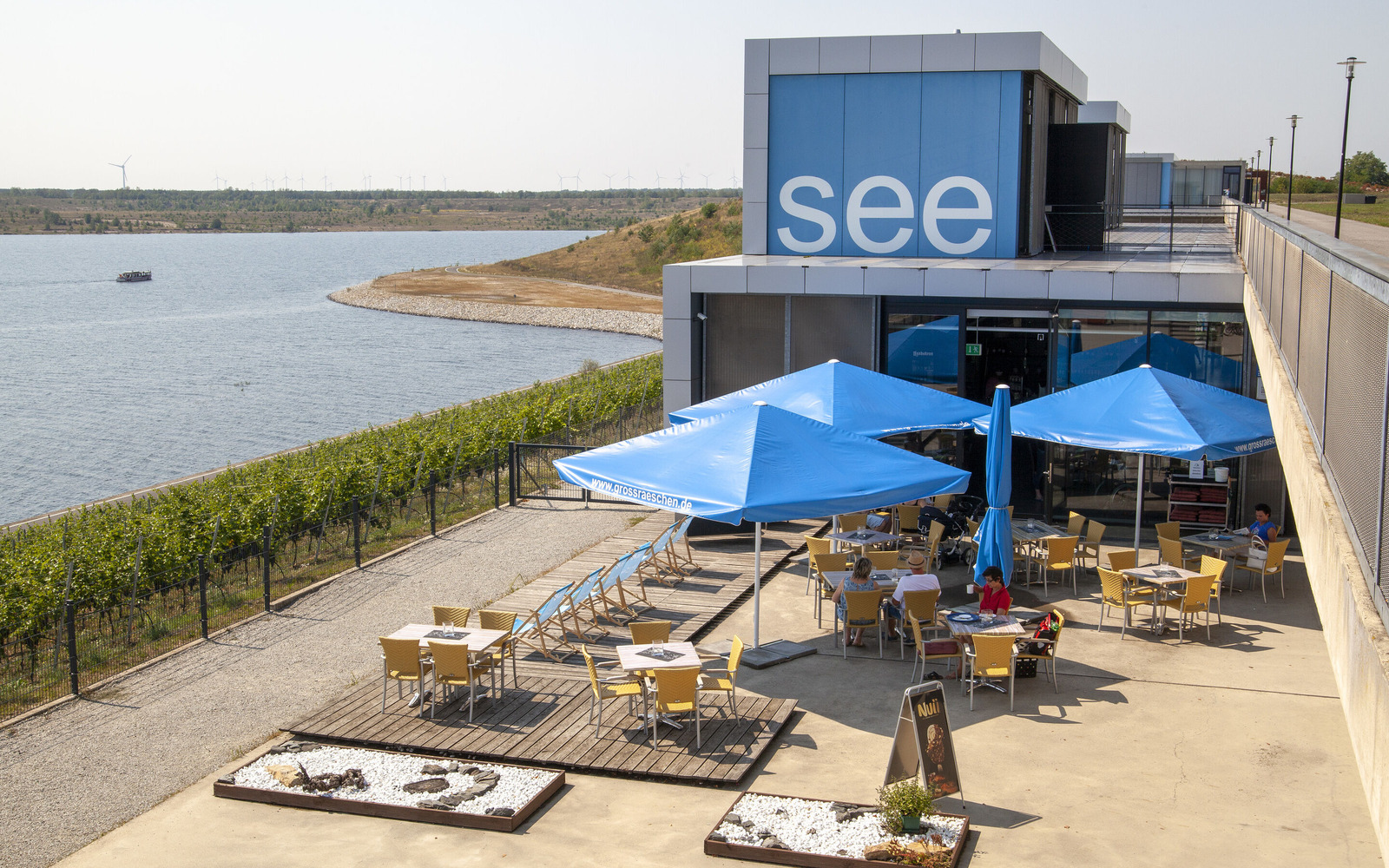 Ein Bistro lädt zum Verweilen oberhalb des Weinberges ein. Von hier aus kann ein wunderschöner Blick über den Großräschener See genossen werden.