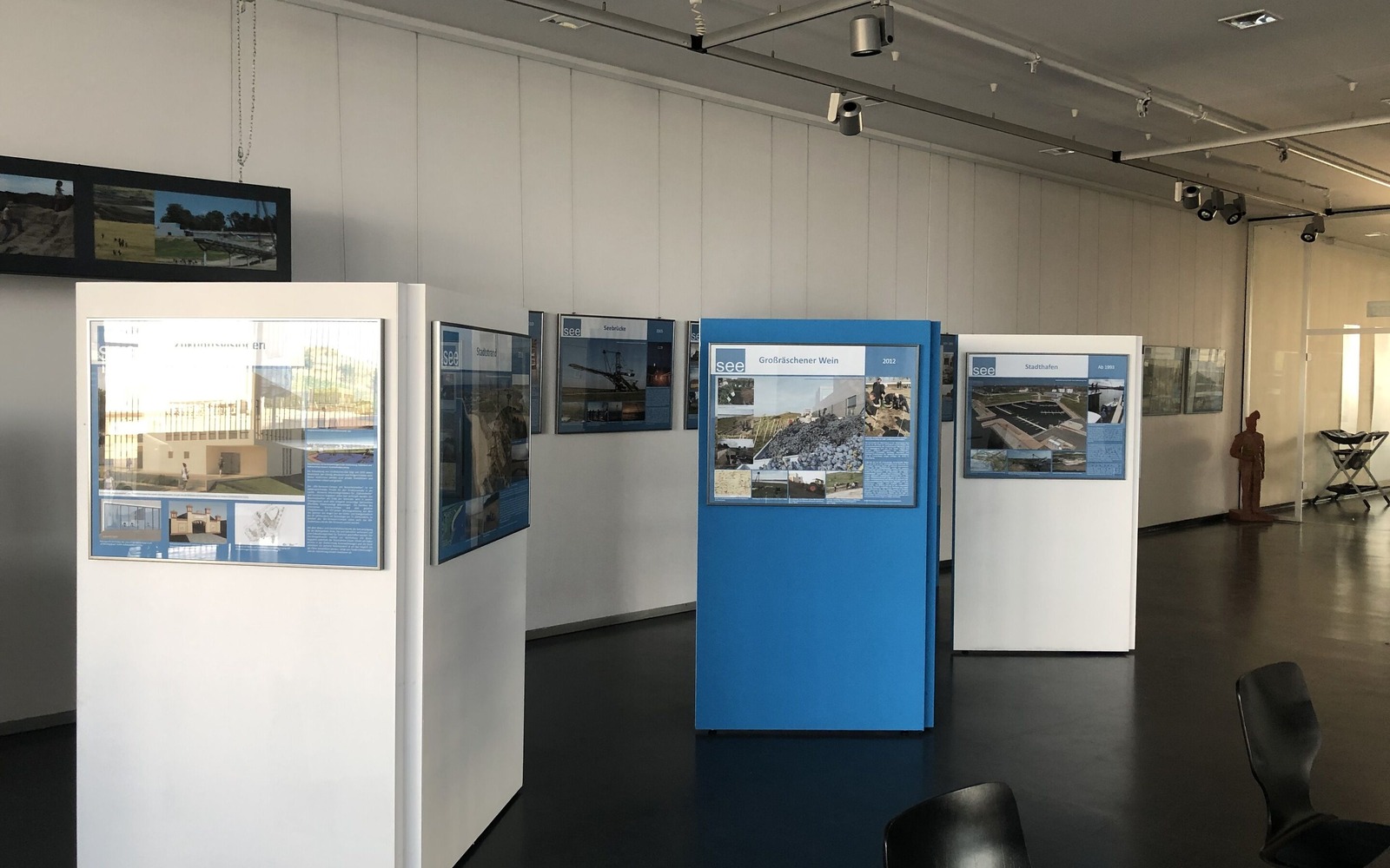 Im Besucherzentrum im Haus 1 wird in einer Ausstellung "12 Fragen - 12 Antworten" erzählt eine Bilderausstellung über Vergangenheit und Zukunft. Bergbau- und Klinkertradition Großräschen, Gerettete Bauwerke, vom Ilse-Ledigenheim zum Seehotel, Vom Tagebau-Großgerätereparaturplatz zum Hafen, von der ehemaligen Tagebauböschung zum Weinberg, Planung neuer Wohngebiete. All das und noch mehr Interessantes, Wissenswertes können Besucher in der Ausstellung entdecken.