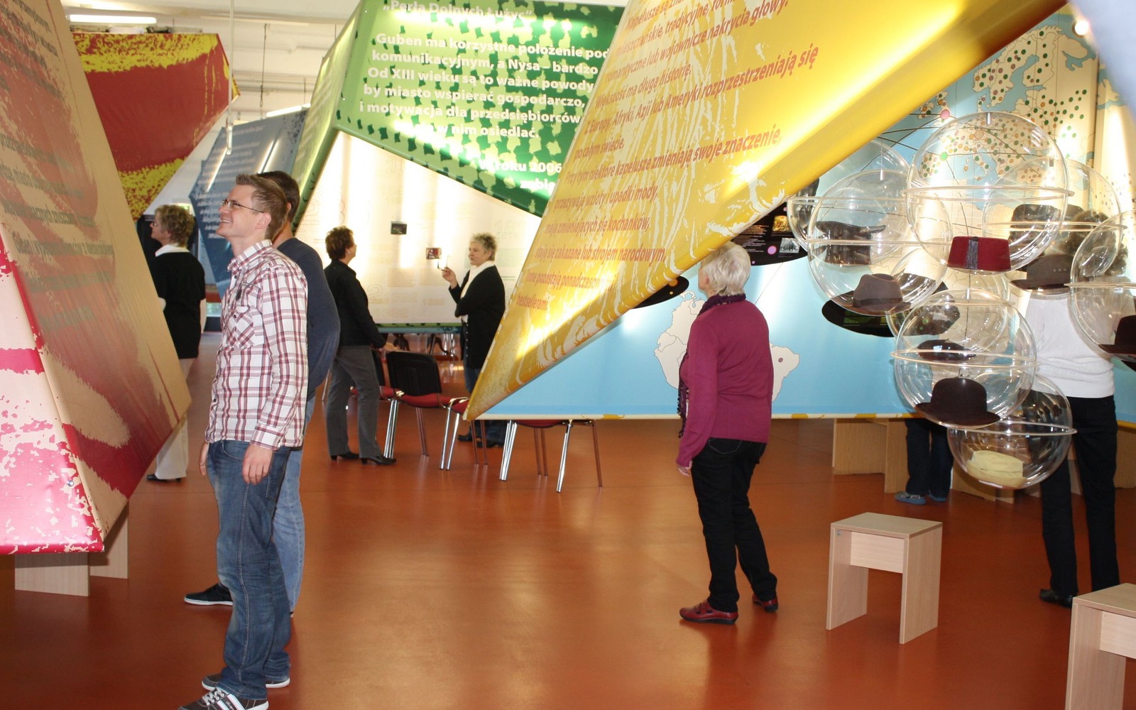 Unter 14 von der Decke hängenden Themen-Hauben ist auf rund 450 Quadratmeter die facettenreiche Gubener Stadt- und Industriegeschichte in deutscher und polnischer Sprache zu erleben. Historisches Wissen zur Stadtgeschichte und zur traditionellen Hutherstellung sind auf unterschiedlichste Weise zu erfahren: durch Geschichten zum Hören und Staunen, Interessantes zum Lesen und Schauen, Geschichte zum Anfassen und Hüte zum Aufsetzen in der „Virtuellen und Echten-Hutprobierstation“.