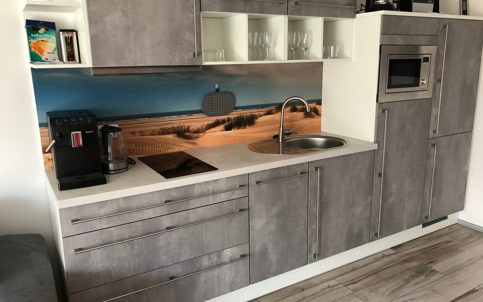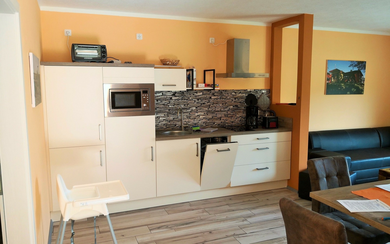 • moderner Essbereich mit gut ausgestatteter Küche und Geschirrspüler, außerdem Kaffeevollautomat