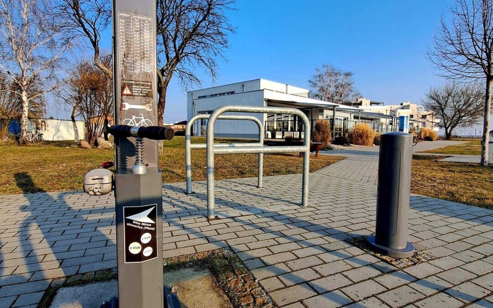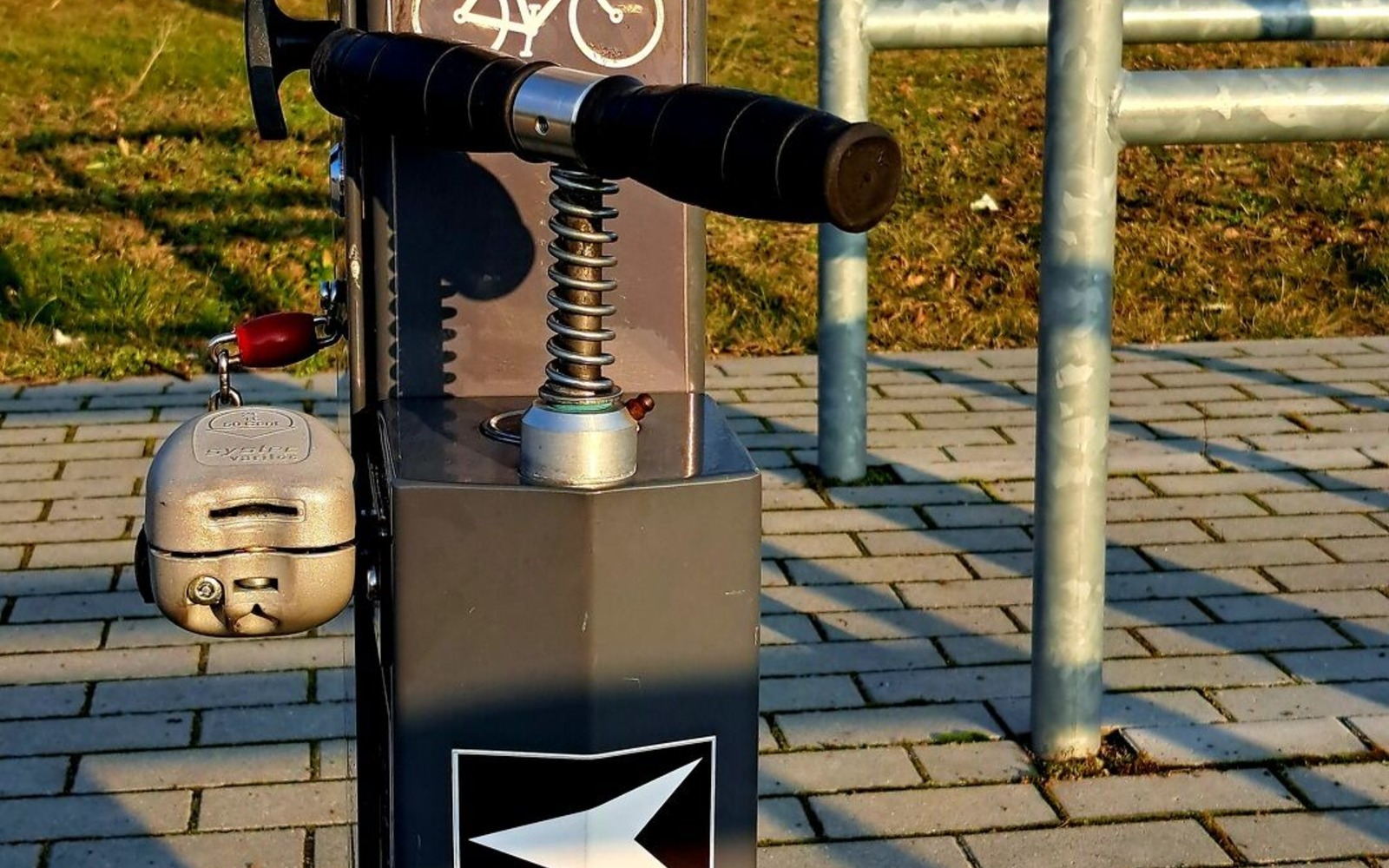 Luftpumpe an der Reparaturstation am Großräschener See, Foto: N. Dittrich, Lizenz: Tourismusverband Lausitzer Seenland e.V.