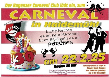 Der Bagenzer Carneval Club lädt erneut zu einem spektakulären Fest nach Haidemühl ein. Unter dem Motto "Es ist kein Märchen – beim BCC geht es um Pärchen" erwartet die Gäste eine unvergessliche Feier voller Musik, Tanz und ausgelassener Stimmung. In diesem Jahr feiert der BCC zudem ein besonderes Jubiläum – 30 Jahre voller Leidenschaft für den Karneval.