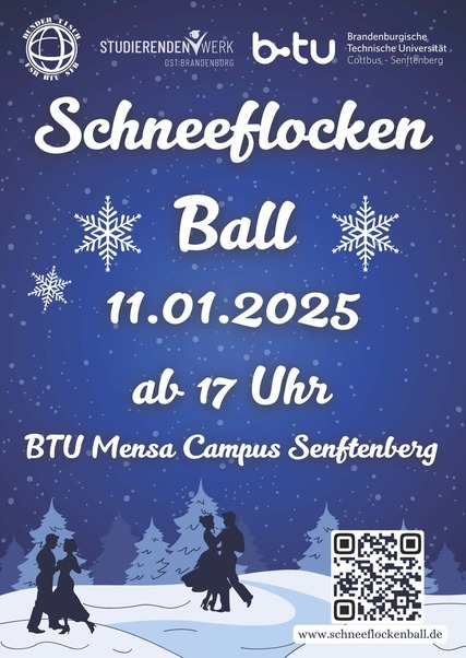 Studierende, Mitarbeitende und weitere BTU-Angehörige sowie externe Gäste sind erneut herzlich eingeladen zum Schneeflockenball am Campus Senftenberg.