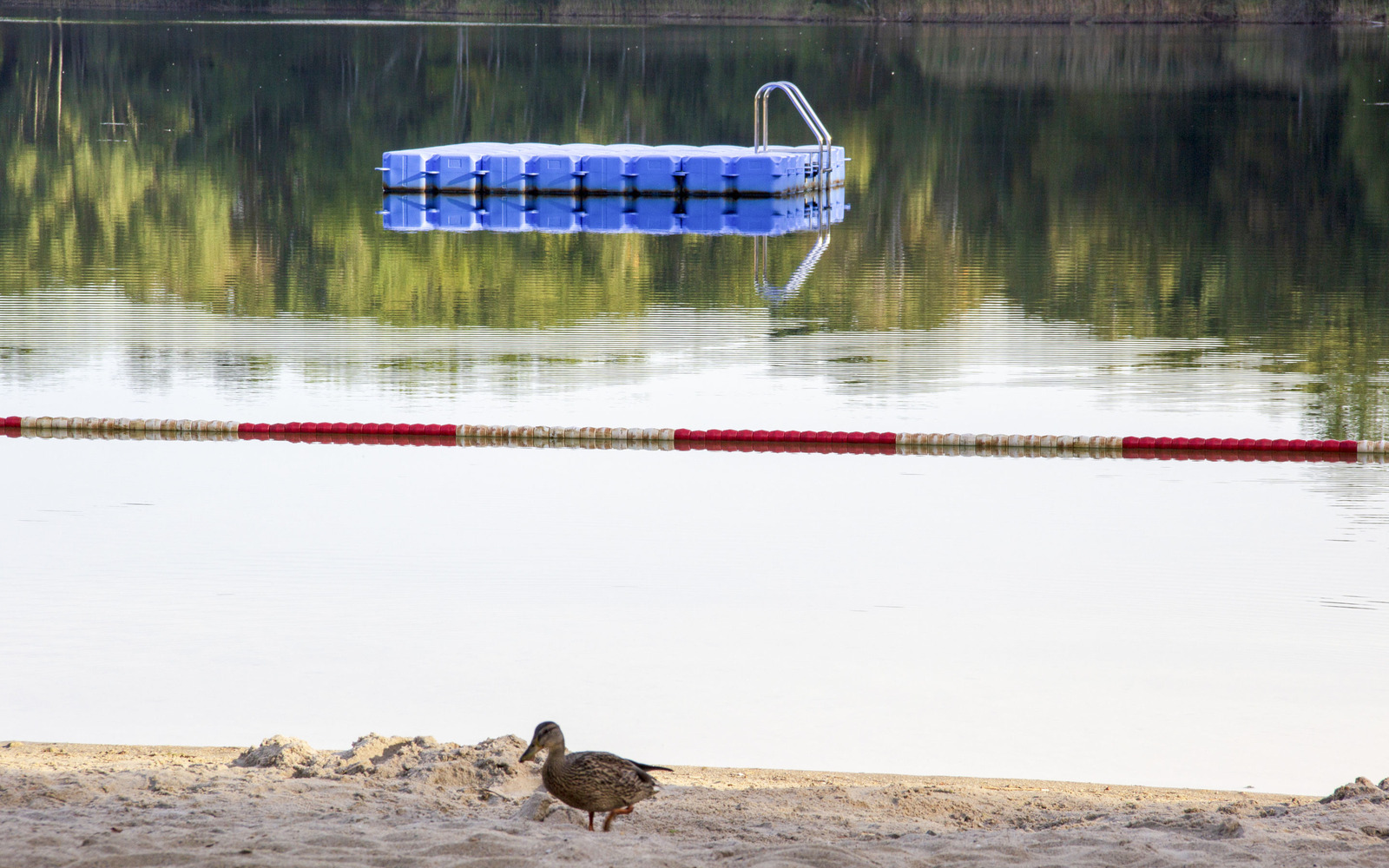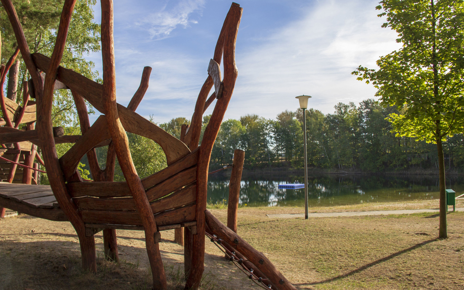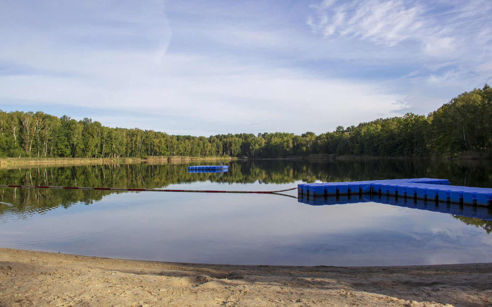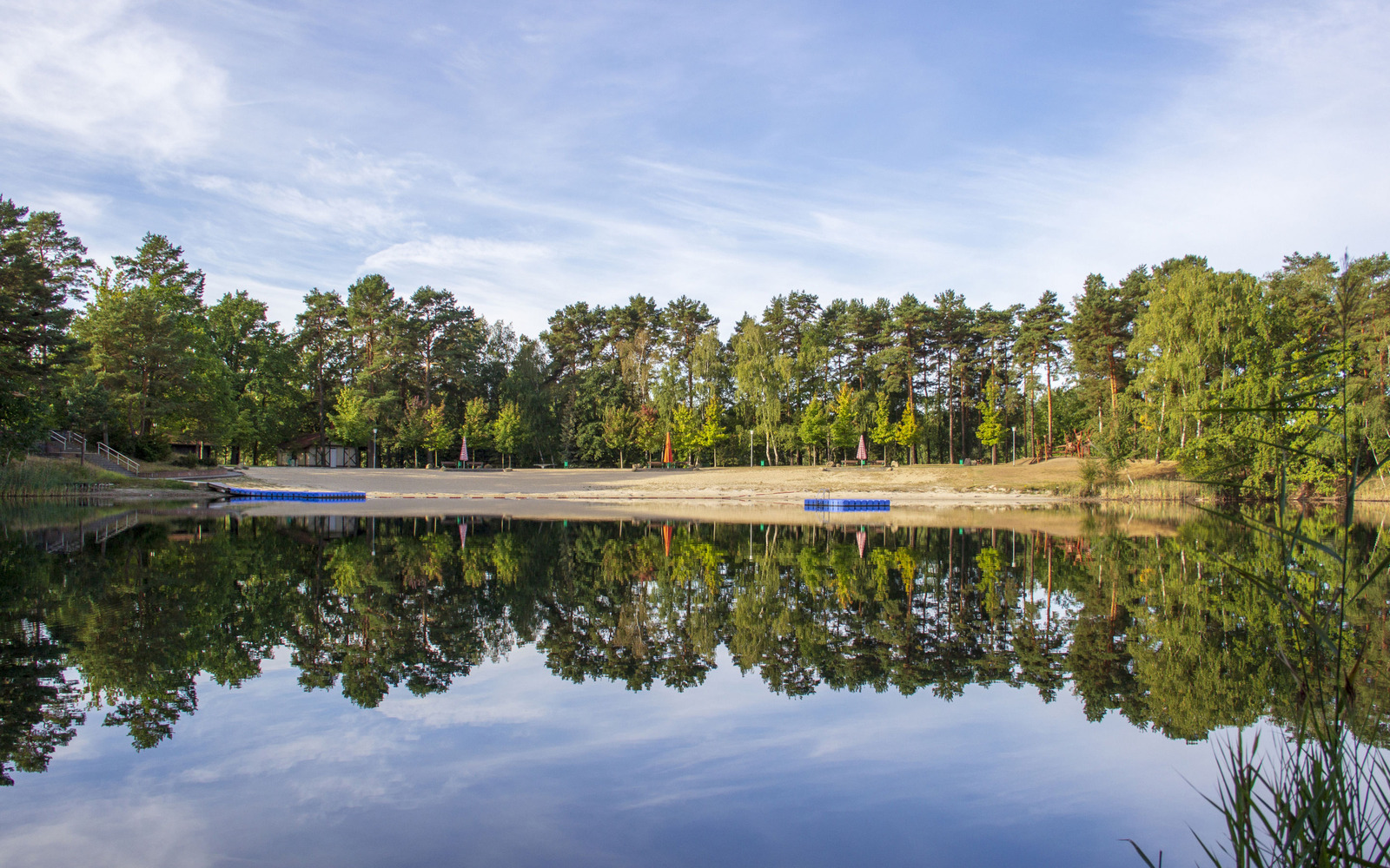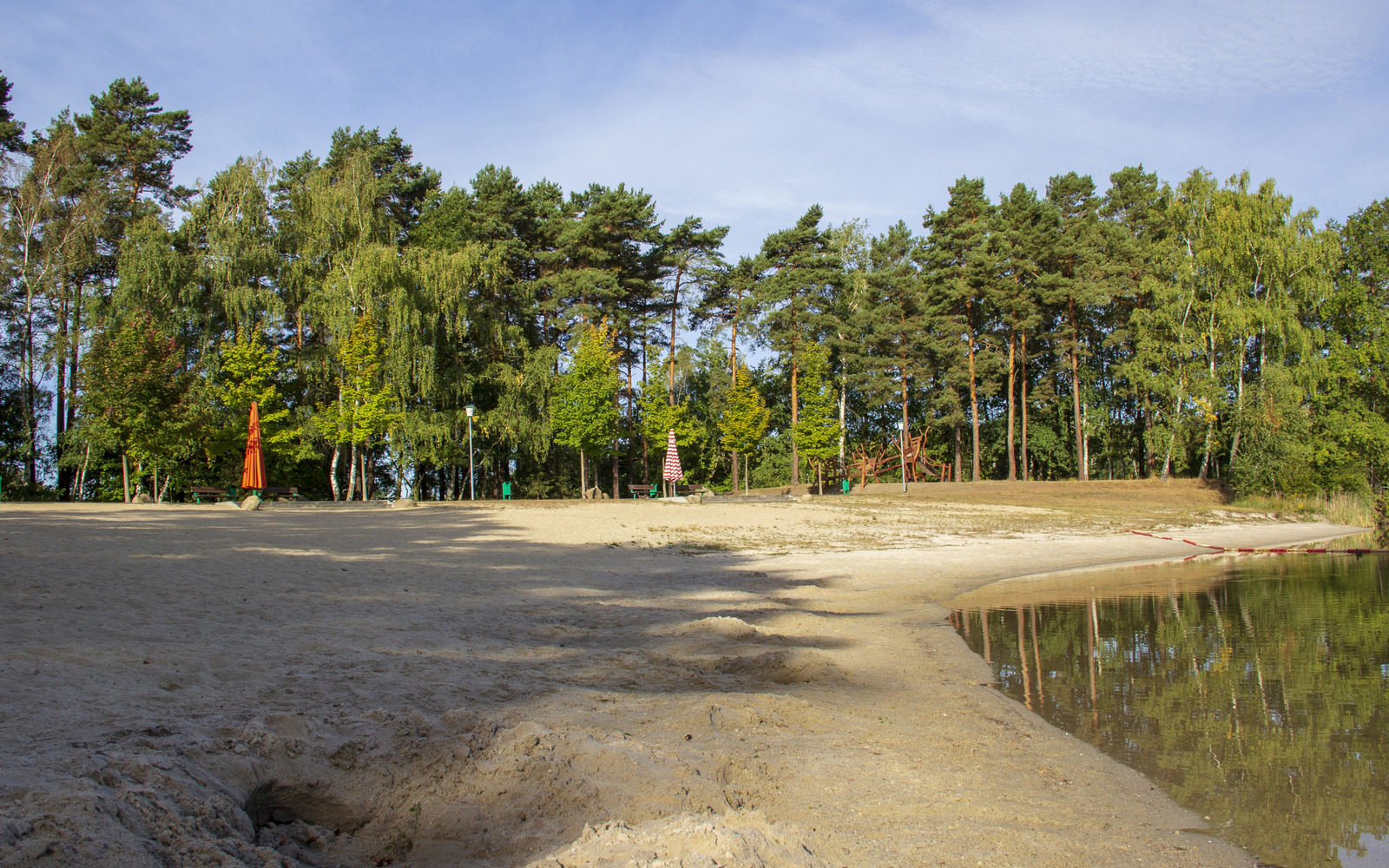 Am See befindet sich ein feinsandiger Strandbereich, ein Spielplatz für Kinder und ein Kiosk. Sanitäre Anlagen sind vor Ort. Der See wird auch gern zum Angeln genutzt. Zwei festinstallierte Sonnenschirme und eine große Anzahl an Bäume sorgen für ausreichend Schatten. In den Sommermonaten ist ein Rettungsschwimmer vor Ort. Ein Parkplatz ist in unmittelbarer Nähe vorhanden.