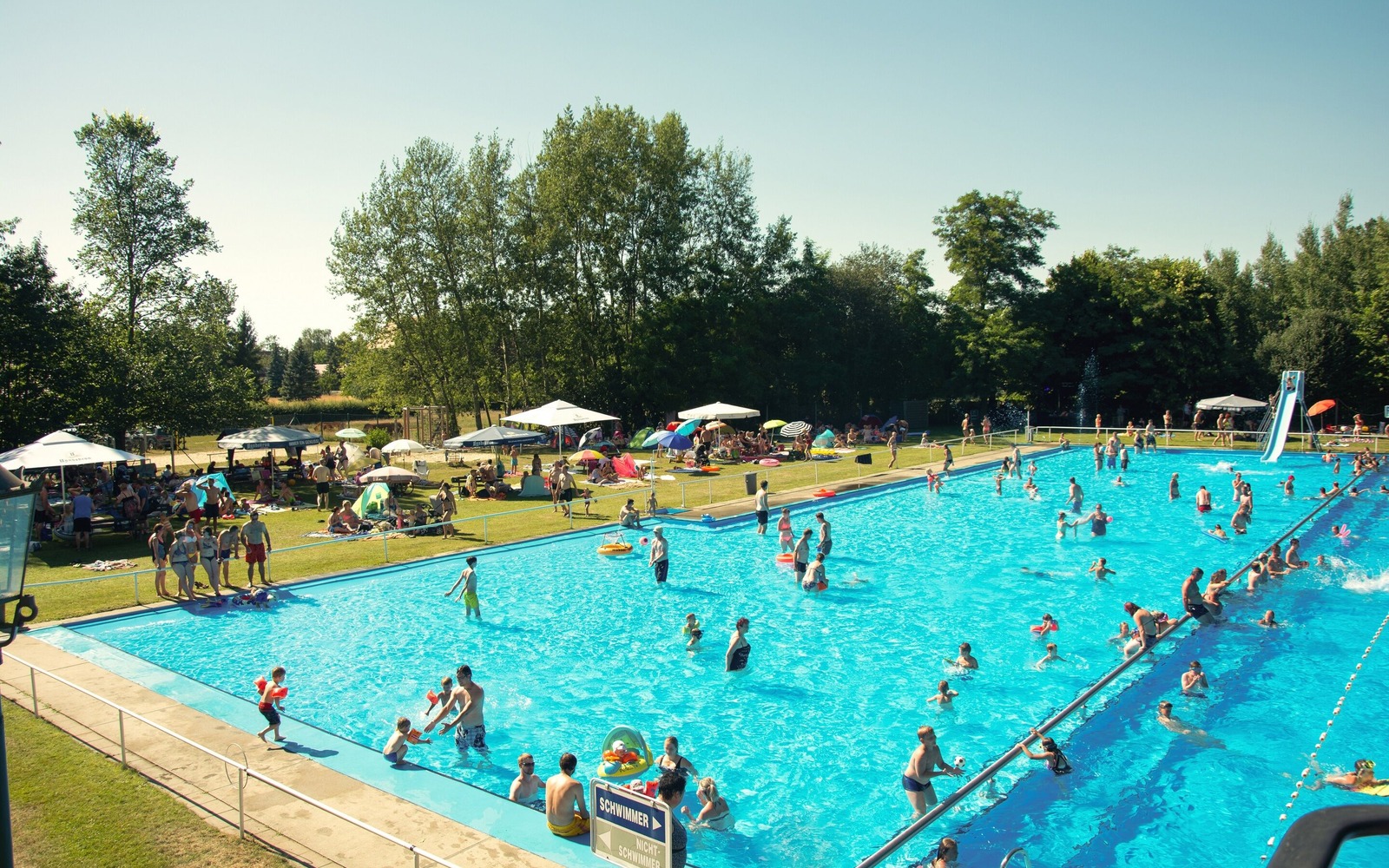 Kostenfreie Parkplätze sind rund um das Freibad ausreichend vorhanden.