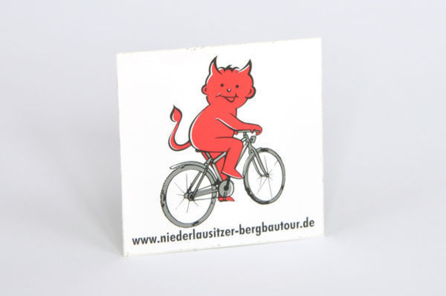 Der radelnde Rekord-Teufel - das Logo der Niederlausitzer Bergbautour - hier als Aufkleber.