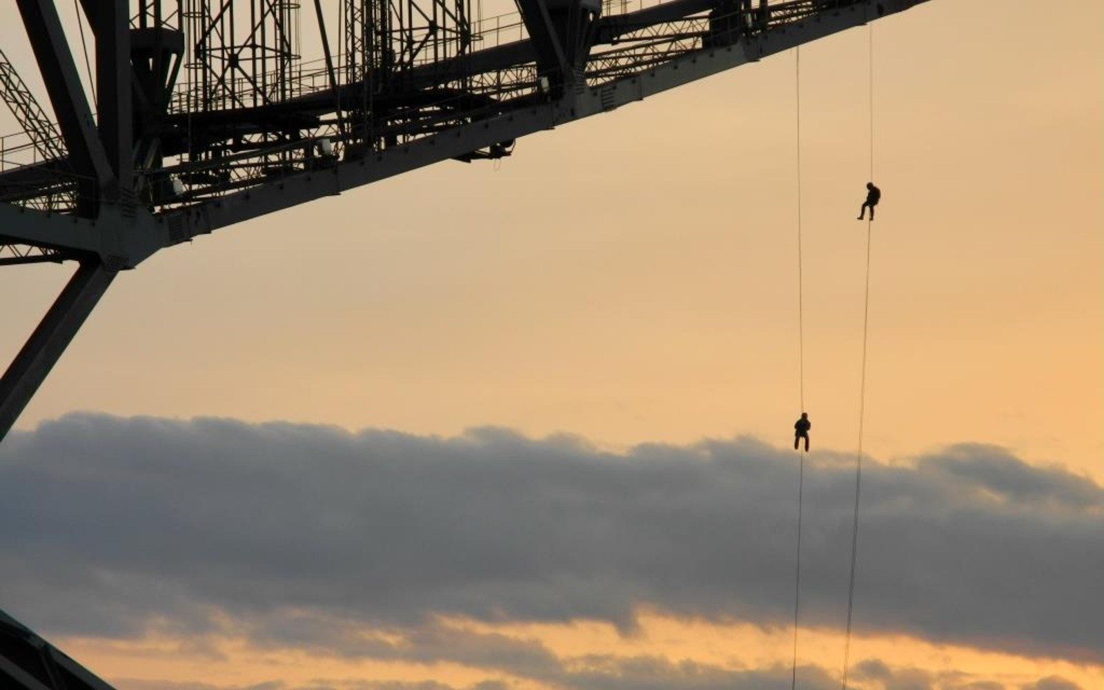 Abseilen vom Besucherbergwerk F60 im Sonnenuntergang, Foto: Prima-Abenteuer