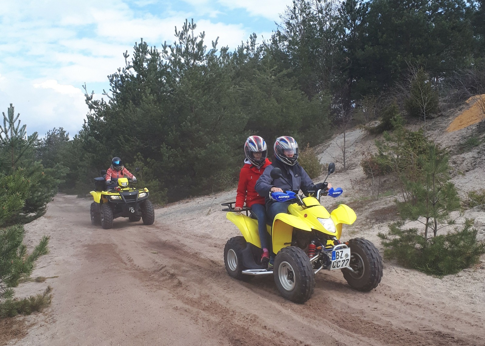 Gas geben heißt es am Partwitzer See: Das Quadcenter Klein Partwitz bietet Quadtouren für Familien mit Kindern ab sieben Jahren an. Dabei dürfen die Jüngsten als Beifahrer bei einem Erwachsenen, der den Führerschein besitzt, mitfahren. Die Touren führen auf Sandwegen am Ufer des türkis schimmernden Partwitzer Sees entlang, der bis Anfang der 1970er Jahre ein Tagebau war. Für Einsteiger empfiehlt sich die einstündige Schnuppertour.
