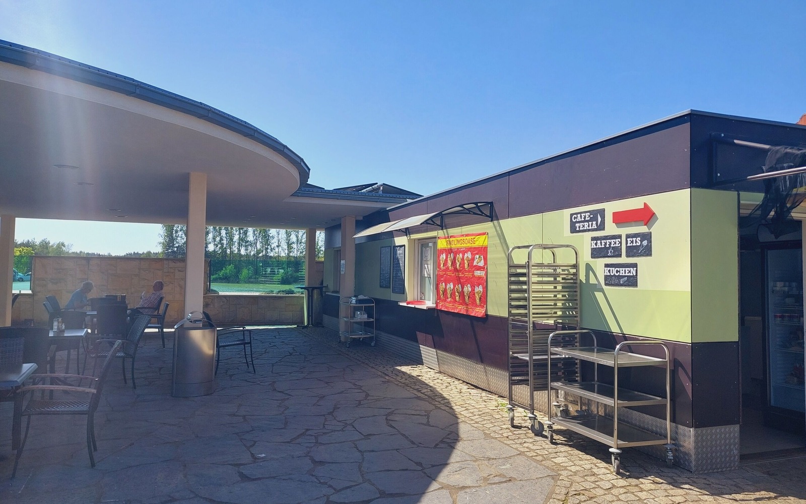 The "Findlingsoase" catering area is only accessible to visitors to the Nochten Boulder Park.
