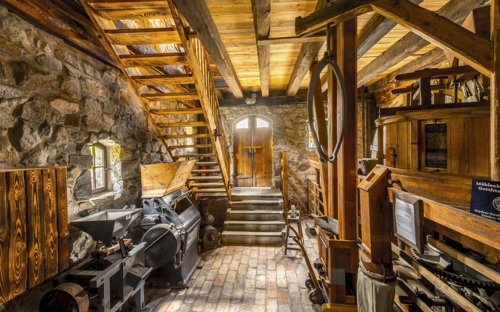 The farmhouse parlour with its popular buttermilk pancakes and snacks as well as the ‘Haus des Müllers’ restaurant provide refreshments.