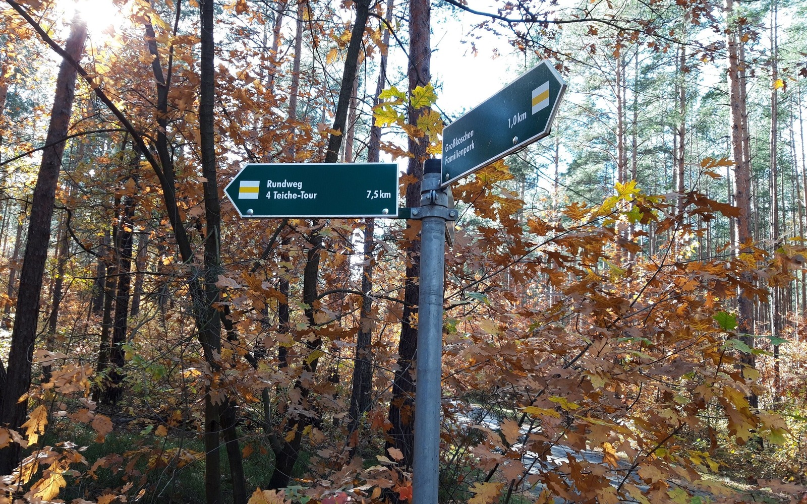 Significant for the water-rich Lusatian Lakeland, the approximately ten-kilometre-long hiking trail leads along various ponds through idyllic nature.