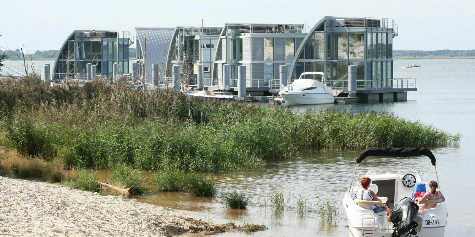 The first floating homes on Lake Gräbendorf and Lake Partwitz were unveiled in 2006. The floating holiday home on Lake Partwitz was created as the model for a whole floating community. Plans are in place to launch an innovative home on Lake Bergheide too, with a prototype for a highly autonomous floating house set to take to the water in autumn.